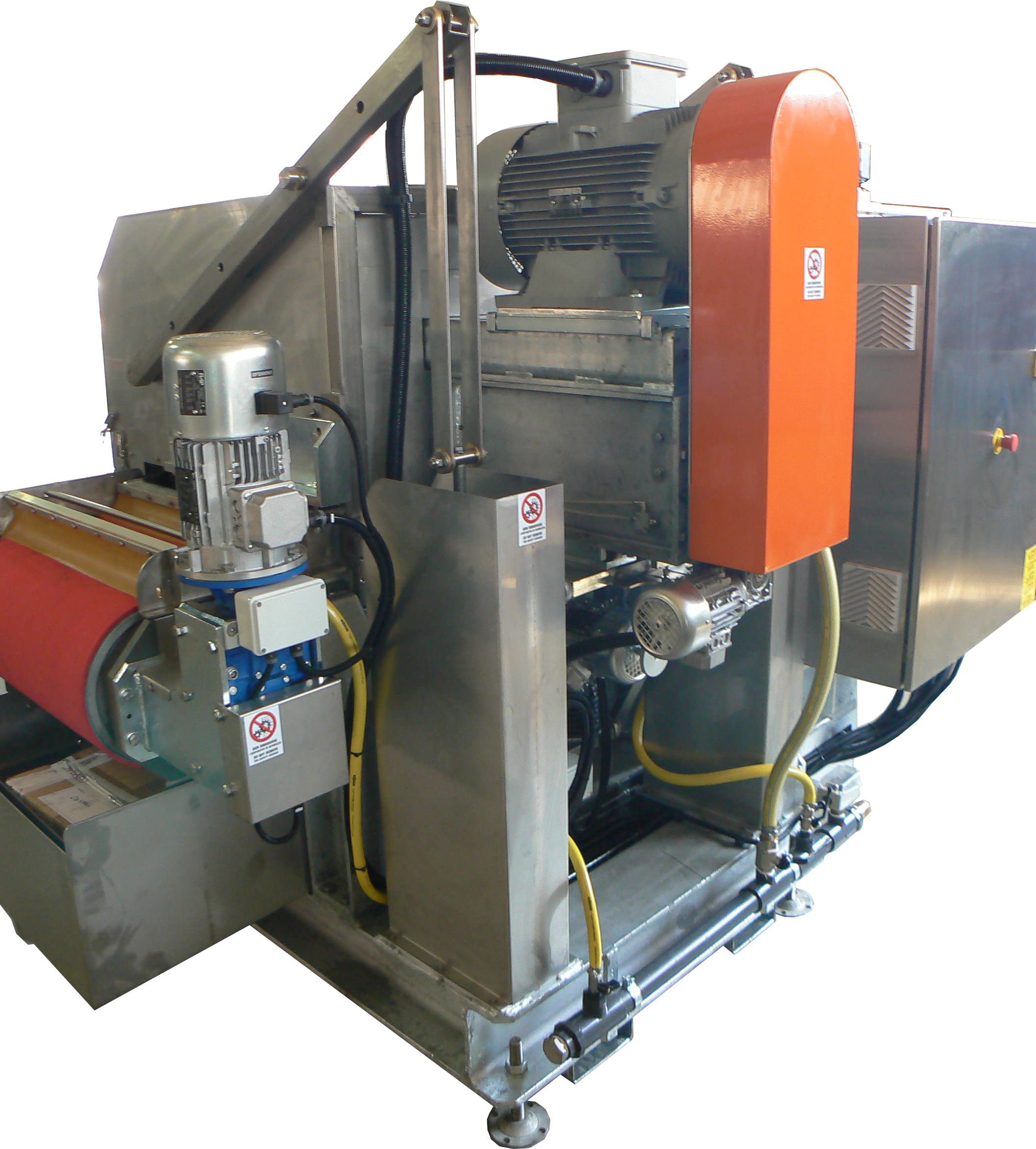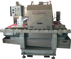 Macchina per taglio lineare a nastro con struttura zincata a caldo e acciaio inox, a una testa di taglio con albero supportato; i dischi diamantati per il taglio sono montati su canotto cromato e retificato, permettendo una rapida sostituzione per il cambio formato.