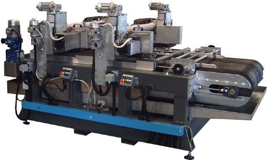 Cutting machine for big sizes, with shipping tape available in various sizes. The machine can support 4 to 6 cutting heads, each of which has a power of 4kW. On the machine, as an option, you may require the automatic positioning of the measuring heads, by setting the electrical panel on the touch screen.