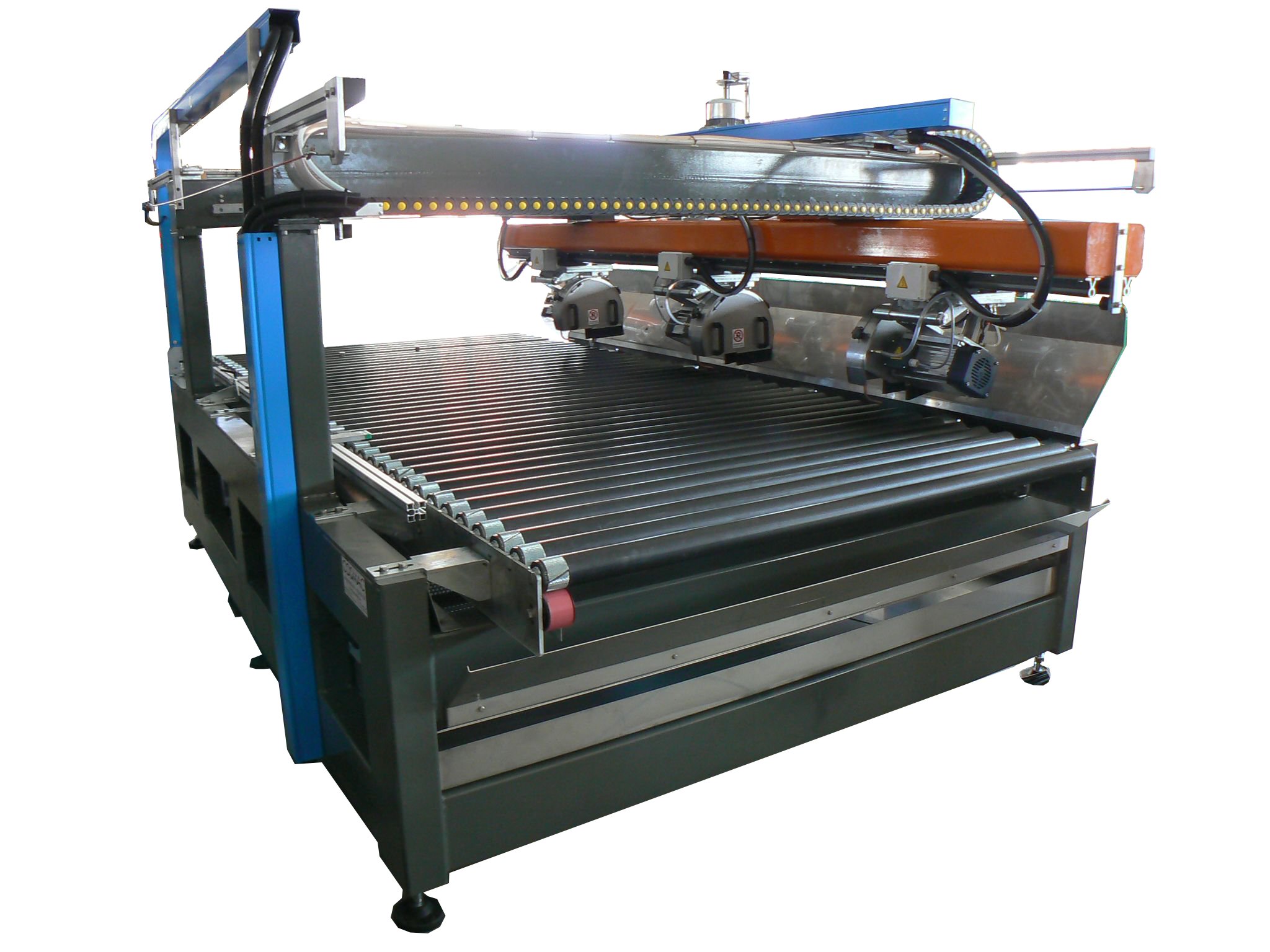 Cutting machine for big sizes. The slab is cut and square depending on the size of the tiles desired. Sheets can be used with a maximum size of 3000 x 1600.
