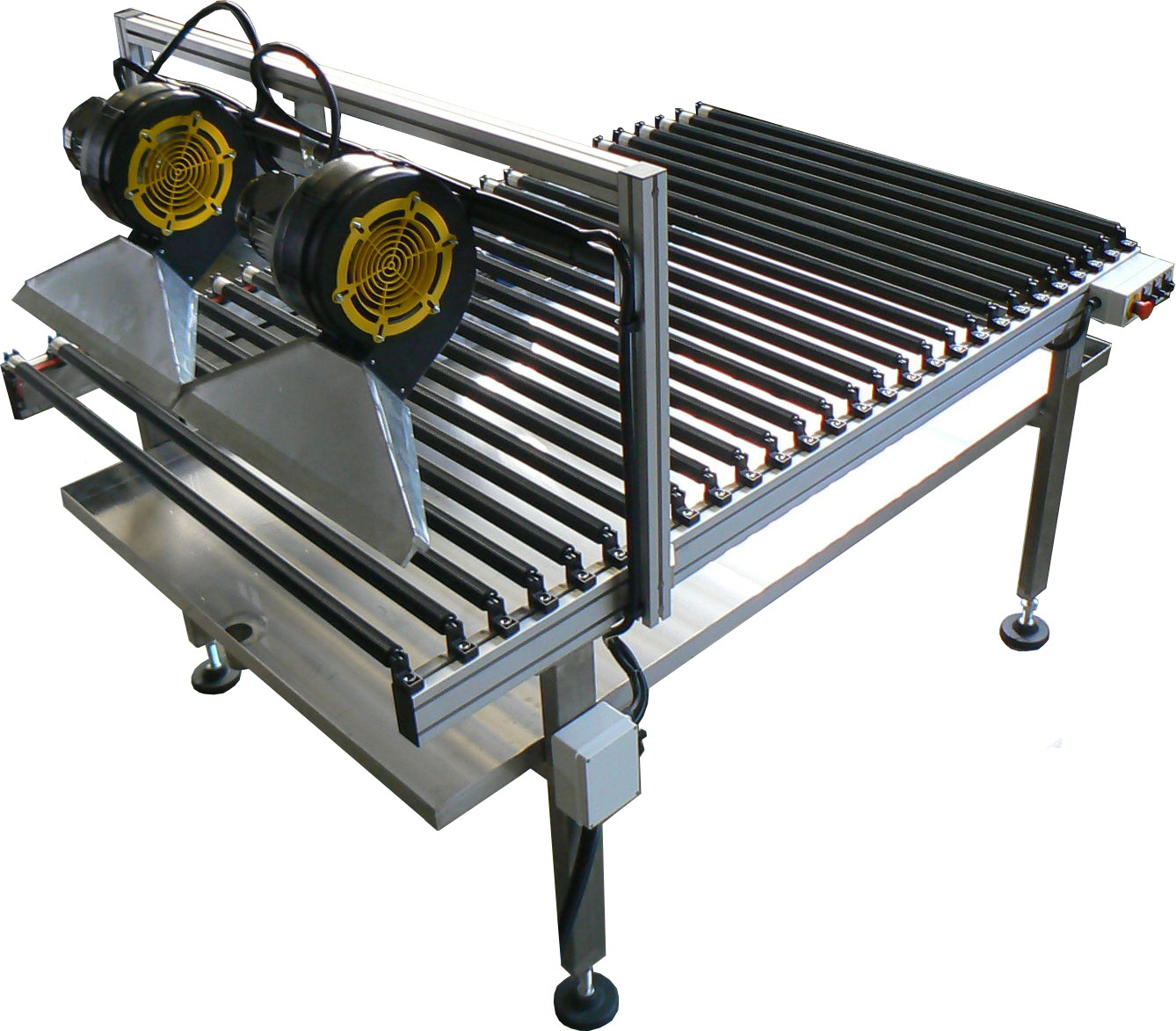 This line is positioned immediately behind a machine for the selection of the product or as a link in an automatic system.
